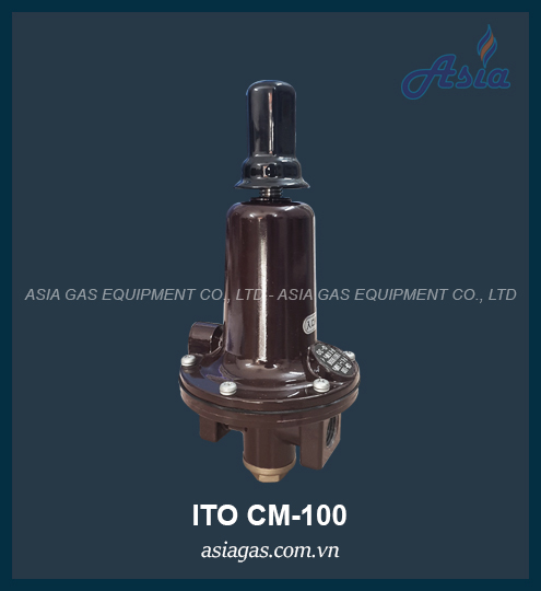Van điều áp gas LPG cấp 1 model CM-100 do ITO KOKI Nhật Bản sản xuất, lưu lượng Q 30kg/h, áp suất đầu vào P 0.1 - 1.56 MPa, áp suất đầu ra R 0.07 MPa (0.03 - 0.15 MPa), thích hợp với các hệ thống gas vừa và nhỏ.
