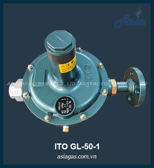 Van điều áp gas ITO GL-50-1 là dòng van giảm áp đơn cấp, áp suất đầu vào cao áp (áp bình gas), áp suất đầu ra thấp áp cố định 2.8 kPa, lưu lượng 50kg/h. Van gas GL-50-1 rất thích hợp cho các lò đốt, các hệ thống máy thấp áp cho các nhà máy.