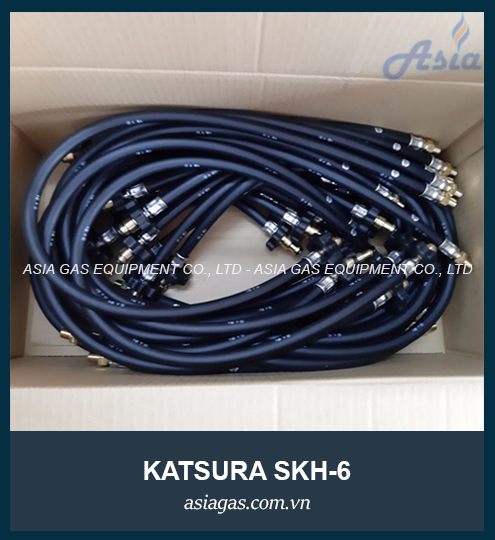 Dây gas rút hơi SKH-6 (dây đuôi heo) là dòng dây dẫn gas cao áp chuyên dùng cho gas hơi, sản xuất bởi Katsura - Nhật Bản. SKH-6 hoạt động với áp suất 15.6 bar, chiều dài 1050mm, dùng kết nối bình gas với thanh góp gas của các hệ thống gas công nghiệp.