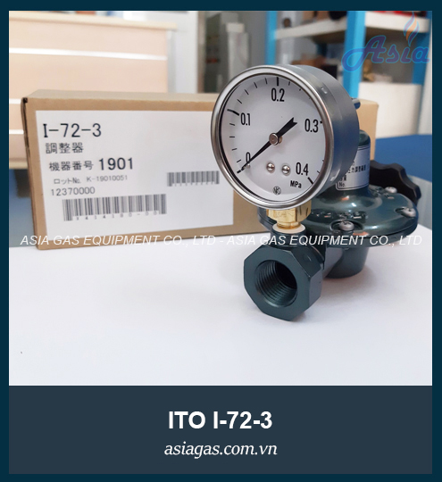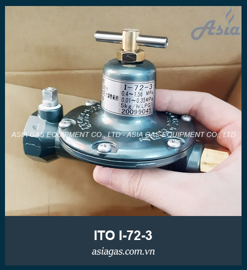 Van điều áp cấp 1 ITO model I-72-3 có các dòng: có đồng hồ áp suất hoặc không đồng hồ áp suất, nối ren hoặc nối bình (đầu POL), tùy vào cách lắp đặt mà chọn dòng phù hợp. Van giảm áp I-72-3 thích hợp cho các hệ thống gas nhỏ với lưu lượng hoạt động 5kg/h, áp suất đầu vào 0.4 - 1.56 MPa, áp suất đầu ra 0.01 - 0.35 MPa.
