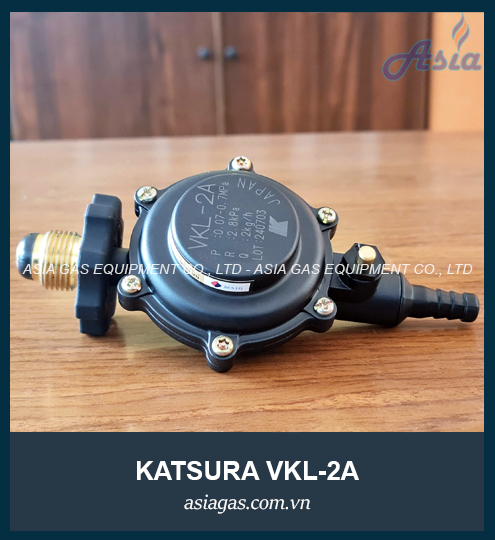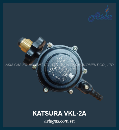 Van giảm áp gas Katsura VKL-2A là dạng van đơn cấp gắn cho các bình gas lẻ với lưu lượng nhỏ 2kg/h, áp vào 0.07 - 0.7 MPa, áp ra cố định 2.8 kPa. Van VKL-2A thích hợp sử dụng cho các bếp dân dụng, các máy móc thấp áp nhỏ,...